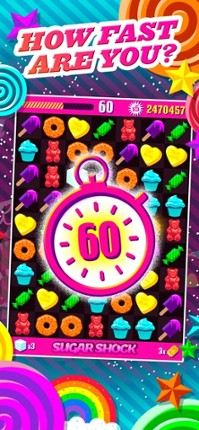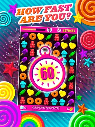 1 46%Game Brain Score46% User Score 7 reviewsWelcome to Sugar Shock! One minute of match-3 mayhem from Jason Kapalka, designer of the original Bejeweled! You have 60 seconds to match as fast as you can and get the sweetest score on the leaderboard. Blast Sugar Cubes and Power Donuts on your quest to reach the Candy Club. Are you quick enough to compete against your friends—and the world—in the ultimate test of speed-snacking fun? Sug…