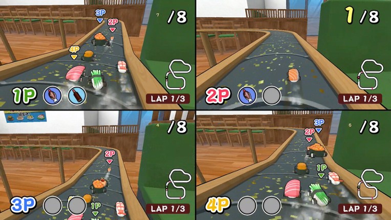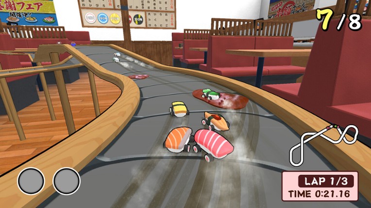 SUSHI Race is a simple and fun game that anyone can enjoy! Each sushi machine has its own appeal! Battle and win with your favorites! Drift around curves with flair! Utilize items like soy-sauce missiles and blockers to outspeed your rivals! 【Time Attack】 Choose a course and record your best time! Compete with players from around the world in online rankings! 【Free Race… If you enjoyed this game, see our list of games similar to SUSHI Race.