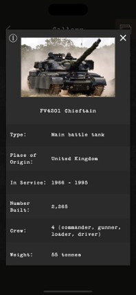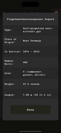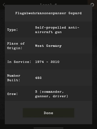 Test your knowledge on the history of armoured fighting vehicles from World War I to the present day. Includes every important tank, tank destroyer, self-propelled artillery, reconnaissance vehicle or anti-aircraft system that shaped the evolution of armoured warfare. Challenge yourself to see how many you can recognise! SIMPLE, FUN AND ADDICTIVE Hundreds of questions with different levels of dif… If you enjoyed this game, see our list of games similar to Guess the Tank.