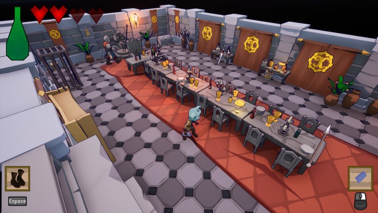 10 View GameEN - Presentation You will control a small blob that must advance in the level, but it has the particularity of being able to grow or shrink using the potions that it will find, keep and use at the right time. You will have to use your reflexes but also your logic and your perseverance. The keys are: right and left arrows, space to jump, E to use the potion. EN - Devlog This game was made during t…