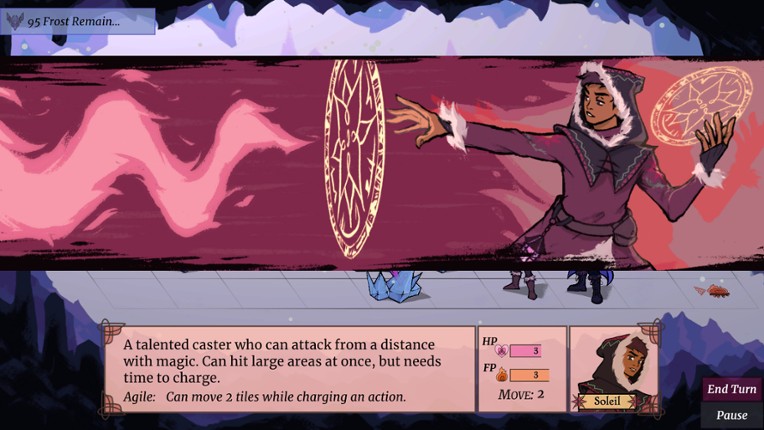 A 2D narrative-focused strategic RPG with visual novel elements. You play as Willow Wisp, a campfire spirit who guides a group of amateur adventurers in harnessing the warm magic of self love to fend off the Frost that surrounds them. If you enjoyed this game, see our list of games similar to Heart of Enya.