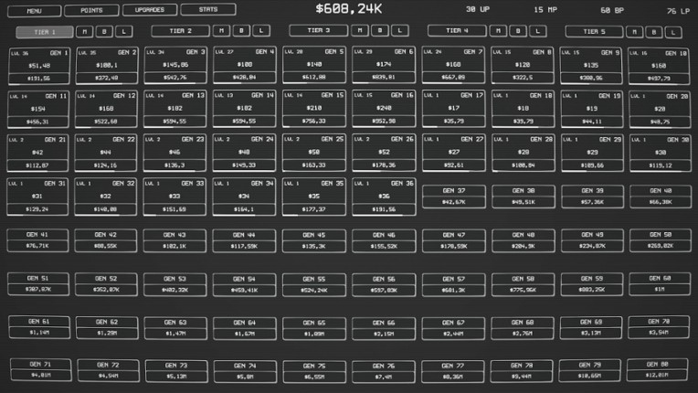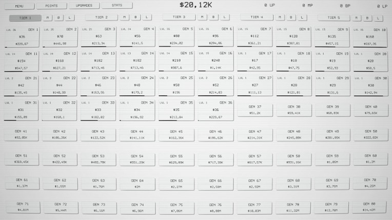 IDLE TIERS is a real idle game with endless possibilities and addictive gameplay. Unlock hundreds of generators to produce passive income! Use 5 different currencies to purchase various upgrades. Invest into base, global or prestige upgrades. Unlock different production tiers to maximize income.GAMEPLAYUpgrade generators, unlock new tiers, buy various upgrades, manage your economy with five differ… If you enjoyed this game, see our list of games similar to Idle Tiers.