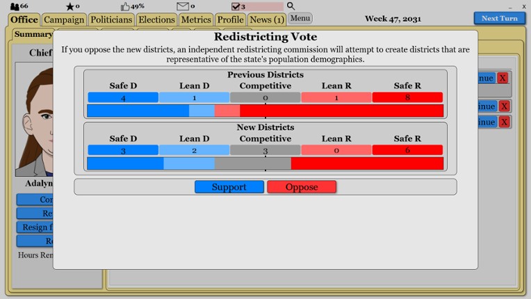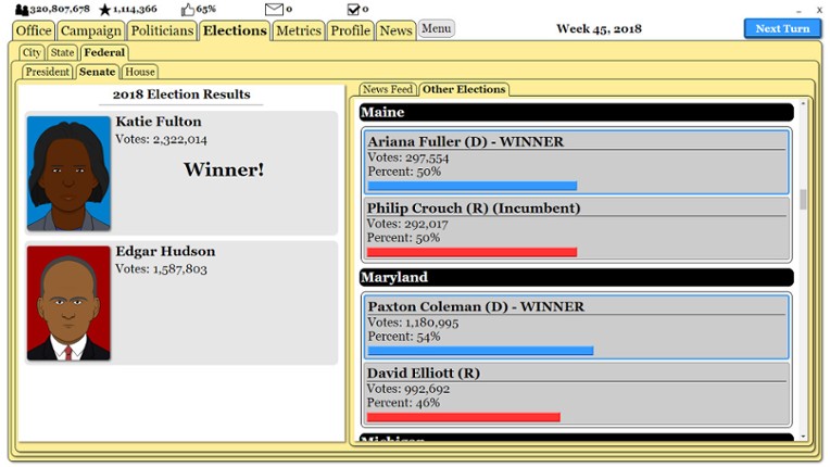 4 95%Game Brain Scoregameplay, replayabilitygraphics, monetization95% User Score 1,878 reviewsExplore a dynamic world of politics in this turn-based, political simulator. Create a character, run for political office, write legislation, balance budgets, and more as you move up the political hierarchy.