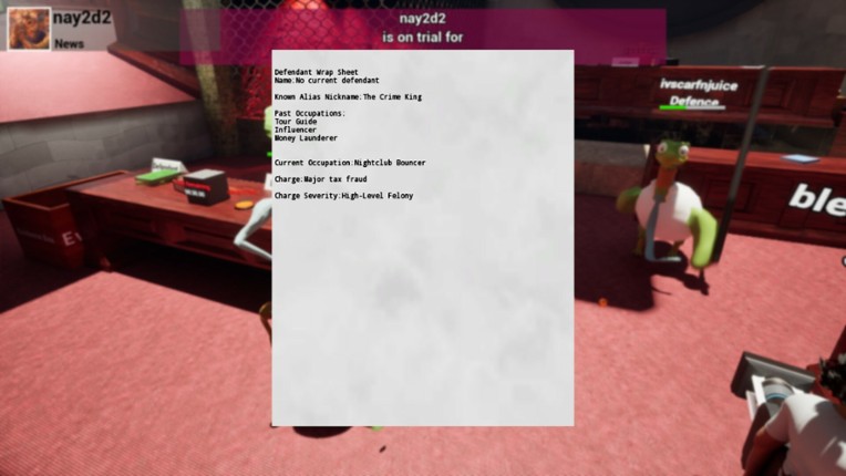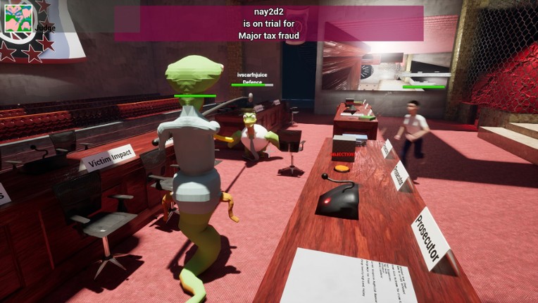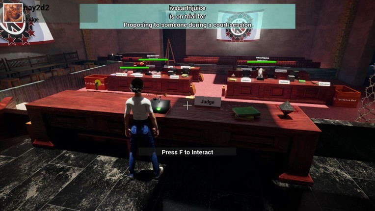 Kangaroo Court is a 4-40 player chaotic, satirical, and humorous court room simulator with trials that range from parking in a handicap zone, to murder trials. In "Kangaroo Court", play as a Judge, Defendant, Prosecutor, or Defense Lawyer! The defendant is GUILTY UNTIL PROVEN INNOCENT! Other roles include: Jury Member, Public Gallery Member, News Crew, Victim Impact, Police and Security.… If you enjoyed this game, see our list of games similar to Kangaroo Court.