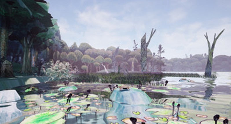 This interactive art work represents an imagined Ontario landscape before human development.Every element in the work has been carefully selected to be faithful to this representation, including the more than 38 native species of birds, bugs, plants and animals that you see and hear in the work.Everything you see in it was hand-painted with watercolours on paper before being digitized to create th… If you enjoyed this game, see our list of games similar to This Land.
