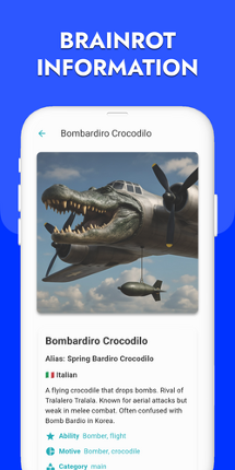 Discover the Fascinating World of Brainrots with the Ultimate App! Are you ready for a unique experience packed with creativity, fun, and challenges? Dive into the universe of Brainrots: original characters created from unexpected combinations. Explore their abilities, quirky origins, and compete with other players to prove who’s the best! Key Features: Guess the Brainrot by sound: Listen to… If you enjoyed this game, see our list of games similar to Italian Brainrot: Info Wiki Sound and Quiz.