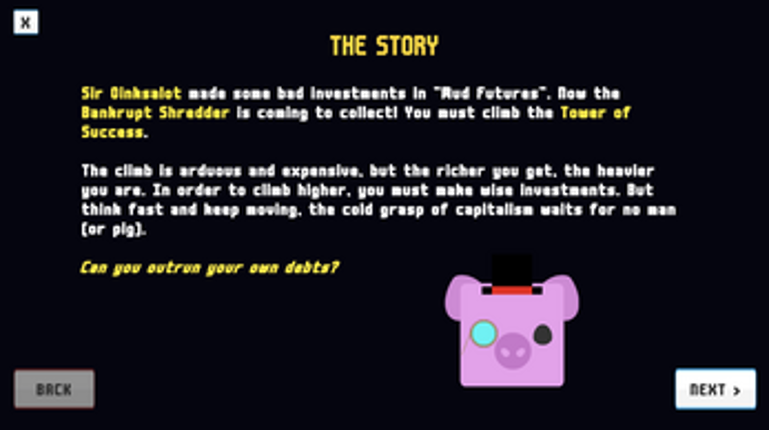 6 HOW HIGH CAN YOU CLIMB BEFORE YOUR GREED WEIGHS YOU DOWN? Weight of Greed is a high-stakes infinite climber where your bank account is your lifeblood. You play as a corporate pig trying to escape a rising industrial shredder. But survival isn't free. Gates block your path, and the only key is Cash. Collect coins to pay the tolls, but be warned: The richer you are, the heavier you get, and if y…
