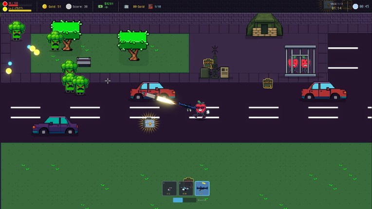 About this Game FIGHT THROUGH WAVES OF VEGGIES Apple Man Sam is a rougelike bullet hell game, where you must defeat waves of enemies, stage after stage, until you defeat the final boss and win the run! LEVEL UP & UPGRADE Kill enemies to earn XP orbs and level up, boosting your stats until you are able to clear all of the waves and stages. Upgrade your weapons at the gun shop in exchan… If you enjoyed this game, see our list of games similar to Apple Man Sam.