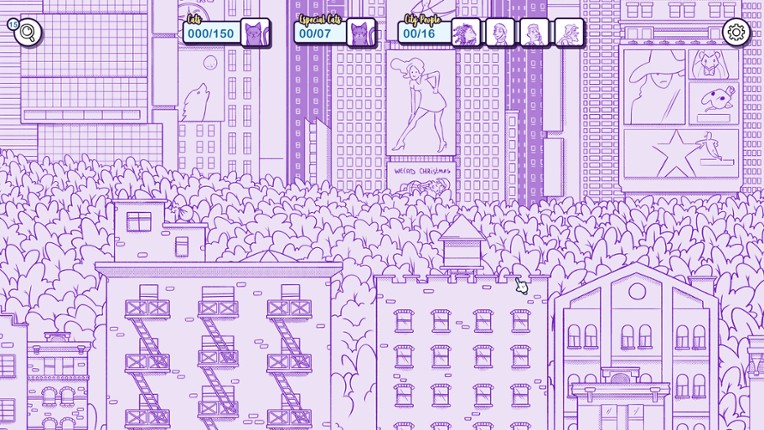 Meow meow! Kittens are hidden in New York, let's find them all. A short and pleasant experience! Start with a Beautiful monochromatic illustration, relax and find all the cats one by one to reveal the final colored art. Play through different modes, find special cats, and unlock bonus levels! If you enjoyed this game, see our list of games similar to Hidden Cats in New York.
