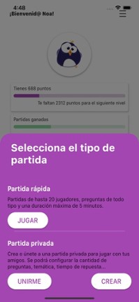 View Game3 Trivialis is a quiz game classified into 6 topics: Geography, Entertainment, History, Art and Literature, Science and Nature, Sports. Each question has 4 answers and only one of them is correct. The game is in real time. You can play in games with up to 20 people at the same time. Will you be the King of the trivial? In trivialis you will have two game modes: - Quick game: Games with up to 20 pla…