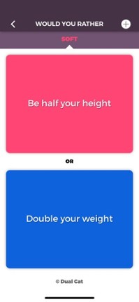 Would you rather be the richest person ever or be poor and immortal? You have to choose! Not easy, huh? Make your choice and compare your answers with others! With 3 000+ impossible choices Would You Rather is the funniest game to break the ice at a party or to laugh by yourself on the bus! "Would You Rather is the best game to get to know people around you in less than 15 minutes". So, would … If you enjoyed this game, see our list of games similar to Would You Rather & Dilemmas.
