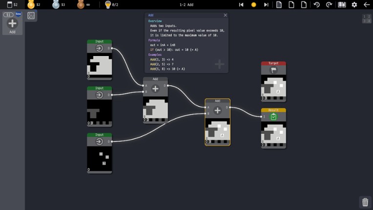 Pixel Forge is a puzzle game where you create pixel art by connecting nodes. A rabbit turns into a bird, and a bird becomes a dolphin? A seahorse and a dragon merge into a rapper? With just nodes, anything is possible. Each of the over 50 nodes, including Add, Subtract, Shift, Rotate, Split, and Combine, has its own unique function. Connect these nodes in various ways to transform pi… If you enjoyed this game, see our list of games similar to Pixel Forge.