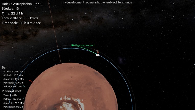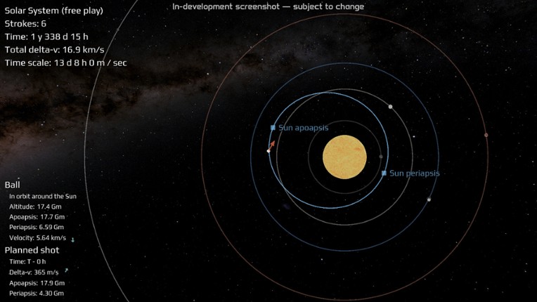 What if you could hit a golf ball so hard it went into orbit? Now you can find out. In Celestial Golf, you will learn the techniques used in real space flight to get your ball through a wild golf course throughout the solar system, and beyond. Realistic orbital mechanicsCelestial Golf is designed to teach actual orbital mechanics — the laws discovered by Newton which govern the motion of the pla… If you enjoyed this game, see our list of games similar to Celestial Golf.