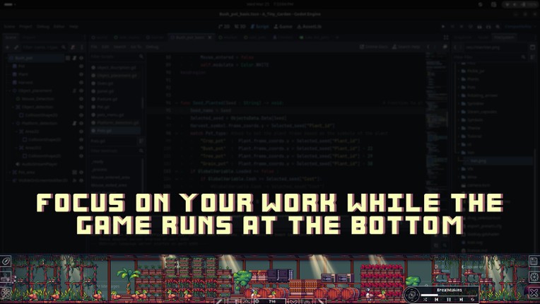 "A Tiny Garden" is a simple and relaxing gardening and farming game living at the bottom of your screen. Watch a movie, work, or browse the web all while tending to your own peaceful little natural paradise Plant crops, bushes, trees, and grains. Unlock different tiers and grow your garden to match your gardening style. Plan efficiently to maximize your profits, design the perfect… If you enjoyed this game, see our list of games similar to A Tiny Garden.