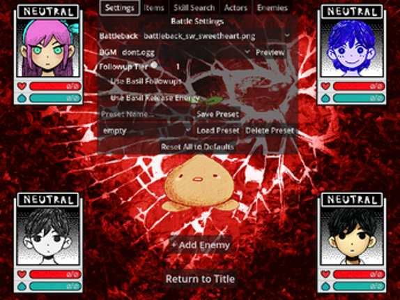 OmoriSandbox is a recreation of the OMORI battle system in the Godot game engine, mainly written in C#. It aims to recreate the battles from OMORI as accurately as possible, while allowing for any combination of party members, enemies, skills, and items, much like a sandbox mode in other games. Currently, the program is in an alpha/pre-release state, meaning that some features from the base game… If you enjoyed this game, see our list of games similar to OMORI Sandbox.