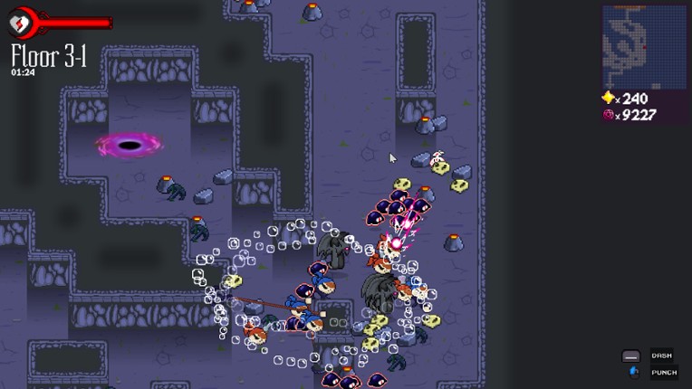 DASHPUNCH is a fast-paced action roguelike inspired by the many greats of the genre, with its own unique twists and a cast of colorful characters! Explore procedural tile-based dungeons made of over a hundred unique rooms, defeating waves of enemies in satisfying close combat. Encounter strange and unique items, hazards and challenges, powerful bosses, and unlikely friends as you carve out a legac… If you enjoyed this game, see our list of games similar to DASHPUNCH.