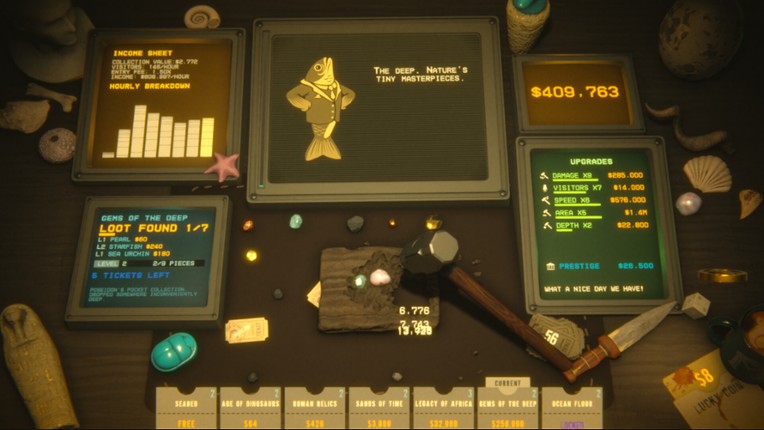 You wanna Smash?Unlock auto-hits, new hammers, size, speed and damage upgrades, no stone will be left unsmashed. The prestige that comes with the MuseumFind Museum Tickets in the stones and spend them on the 50+ prestige skills to progress faster. Fill the Museum With VisitorsVisitors never stop coming. As your collection grows, crowds fight their way into your museum just to pay you the hefty… If you enjoyed this game, see our list of games similar to Smash Hit Museum.