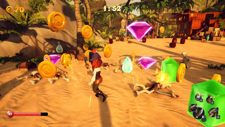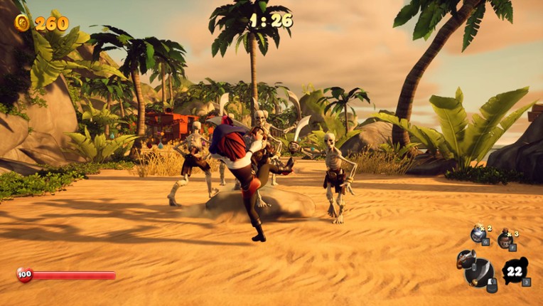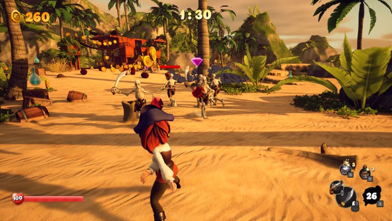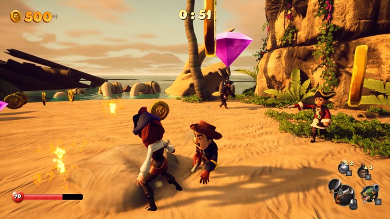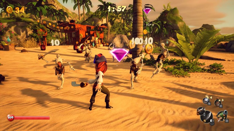 9 Avast ye! Welcome aboard to the ultimate pirate adventure in SHORES OF PLUNDER! Battle friends, outlast hordes of enemies, and amass the greatest fortune in the seven seas. Race against time on a dangerous island filled with treasure, then unwind in a secret pirate cove full of shenanigans.