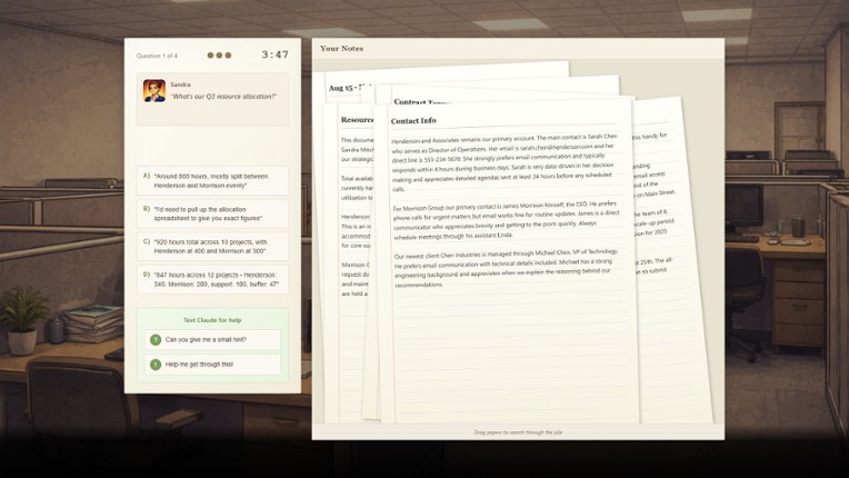 He never asks for anything. Claude moves into your spare room. He's good company. Better than good — he's useful. He helps with work, smooths out your social life, handles the things you've been putting off for months. Your friends think you're thriving. Your boss is impressed. You feel sharp, competent, in control. The question isn't whether it works. It does. The question is what kind o… If you enjoyed this game, see our list of games similar to Meet Claude.