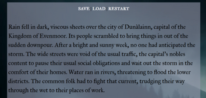 View Game2 53%Game Brain Score53% User Score 7 reviewsYou are a bastard of the REDACTED Family, a Noble House in the fantasy kingdom of Evenmoor. Like all bastards, you have a chance to earn your own name in the Dragonfall Battalion, a special forces group trained for battle against the supernatural. Unlike most bastards, you have Faerie blood, a legacy that will shape your path in the Battalion. Choose between She/Her, He/Him, and They/Them pronouns…