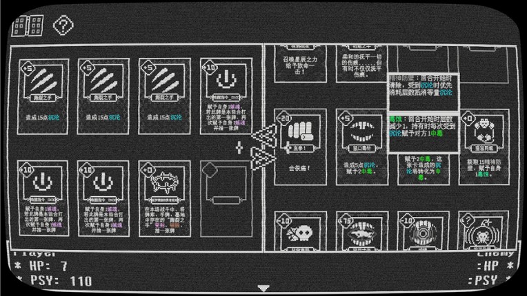 4 出院指南 1. 接受治疗 2. 接受再也无法目睹的次日清晨 3. 接受无休止的,循环往复的噩梦 4. 接受死亡,或者任何更糟的情况 5. ██████████████████ ------------------------------------------------ 游戏简介 首先:光敏性癫痫警告 本游戏是一款结合了BDG(卡组构筑)和恐怖解密要素的RPG游戏 流程约1-2小时,具有一定卡牌游戏经验者可能会获得更好的体验 以上 ------------------------------------------------- 基础操作说明 WASD/方向键 移动 Z/鼠标左键 调查/对话 ESC 菜单 左CTRL/P 快进文本