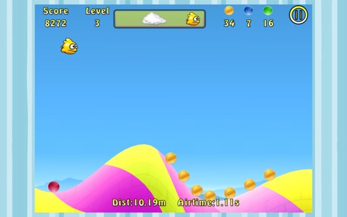 Our tiny yellow hero is back better than ever and still wants to fly like a bird. But he has fins and no wings. So he needs the hills to gain speed and fly from hill to hill to avoid getting caught by the snowstorm that is chasing him. It features: + Nice looking levels + 16 missions to solve + Nice graphics (incl. particle-systems) in Full-HD! + Great Music Instructions: 1. Press and hold Touch… If you enjoyed this game, see our list of games similar to Yellow Fins TV.