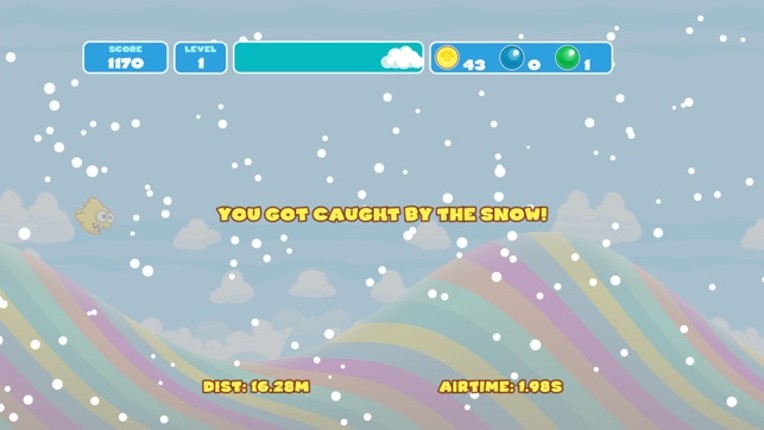 Our tiny yellow hero wants to fly like a bird. But he has fins and no wings. So he needs the hills to gain speed and fly from hill to hill to avoid getting caught by the snowstorm that is chasing him. If you enjoyed this game, see our list of games similar to Yellow Fins.