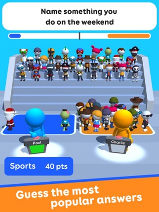 46 View Game83%Game Brain Score83% User Score 89,568 reviewsGuess Their Answer is a casual quiz game where your goal is to outsmart opponents by predicting the most popular answers. Tackle three head-scratching questions per round across diverse topics, earn rewards, and unlock unique skins to personalize your experience. With daily quizzes and competitive matches, every game is a chance to prove you know your trivia. How to Play Guess Their Answer Guess …